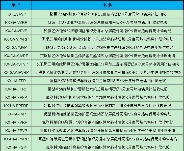 五、補償電纜的型號說明